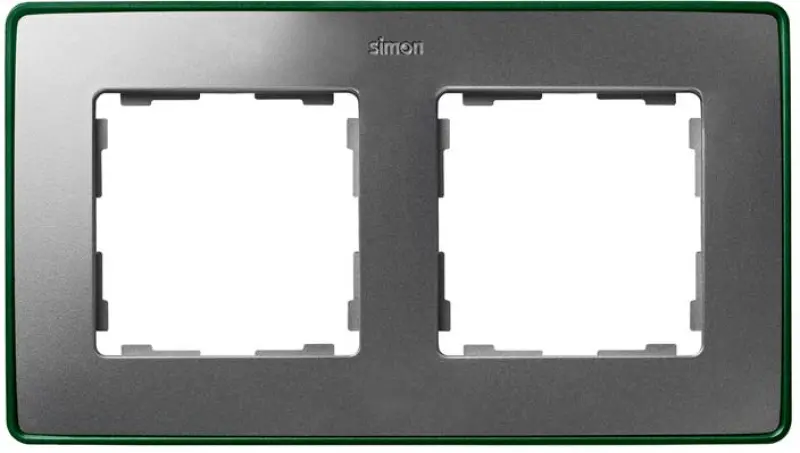 Главная—Розетки и выключатели Simon—Серия Simon 82—Рамки Simon 82 Detail холодный алюминий с зеленым основанием